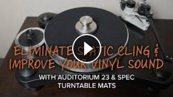 Aftermarket turntable mats have been around since the 1970s as an accessory that vinyl lovers can add to their turntable with the goal being improved sound, updated appearance, a reduction in static or all three. We were really happy to find these three mats and be able to deliver them to all of our vinyl lovers out there. For most people, the basic Auditorium 23 mat will be the best choice, but if you have a nice turntable rig, you should consider the better ones. And the best part about all of them is no more static cling!