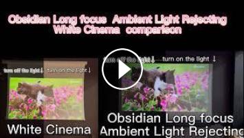 Same XGIMI HORIZON PRO projector, the difference of the VIVIDSTORM Normal Obsidian Long Focus Ambient Light Rejecting Screen and White Cinema Screen.