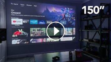 Here’s my 150” Projector setup; a 4K HDR projector with HDMI, USB, Android TV and internal Dolby Digital Audio! This is the Nebula Cosmos Max Review #Projector #4KProjector #TVSetup
