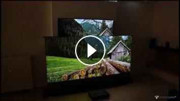 Launch your private cinema with VIVIDSTORM Rollable projector screen VS Samsung 4K Laser Projector